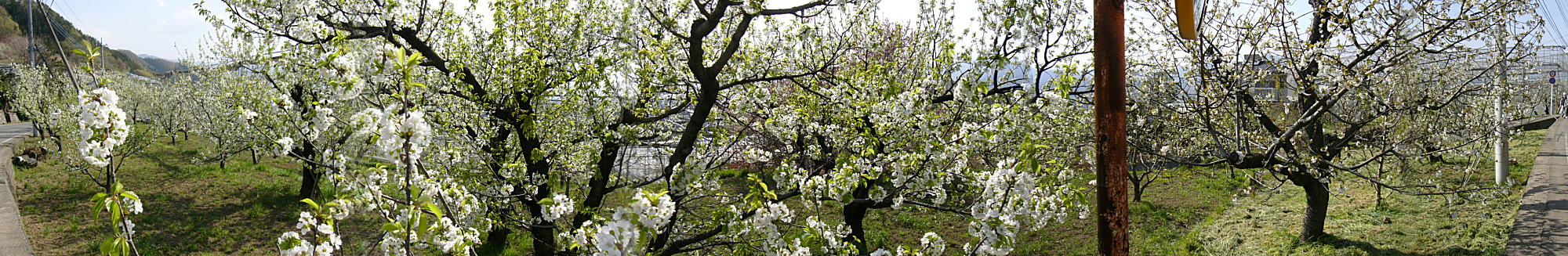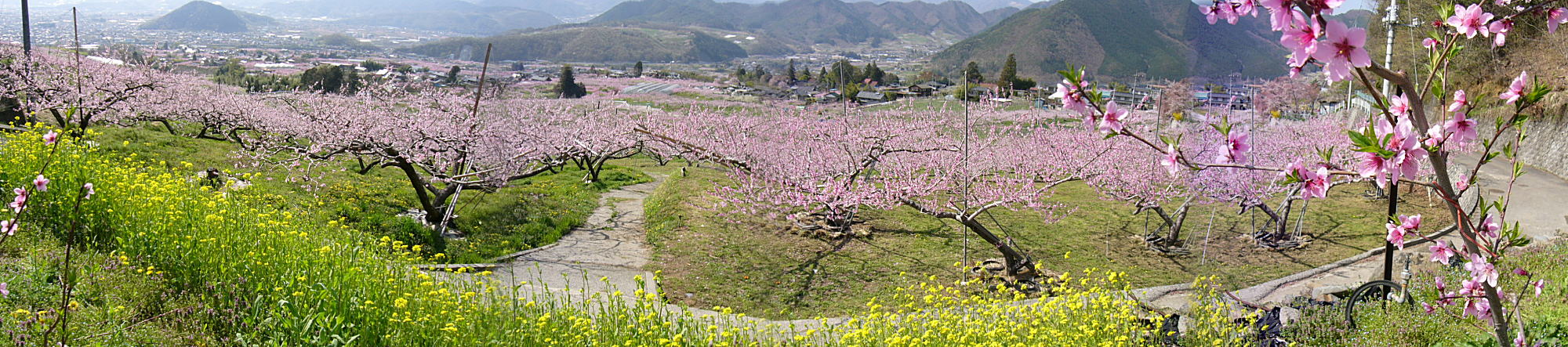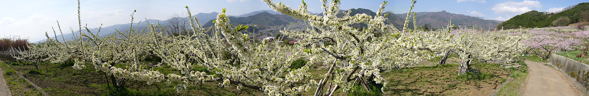 白い花はスモモです。ピンクは桃。塩山桃源郷ではどちらも楽しめます。