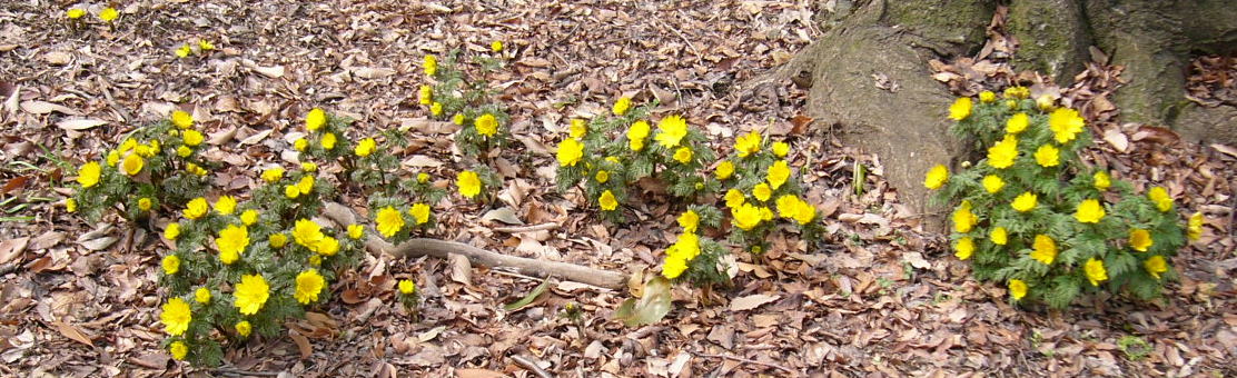 福寿草はパノラマに耐えるほどの密生地にはまだ行けていませんが、とりあえず比較的多く咲いていた場所を載せてみました
