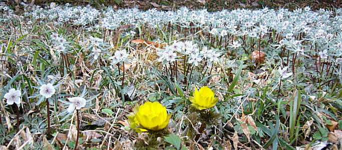 山のふもとにはセツブンソウが密生しているところがありました。