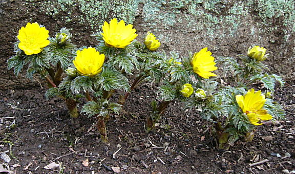 オレンジ色の福寿草。秩父紅または秩父茜と呼ばれているようです。