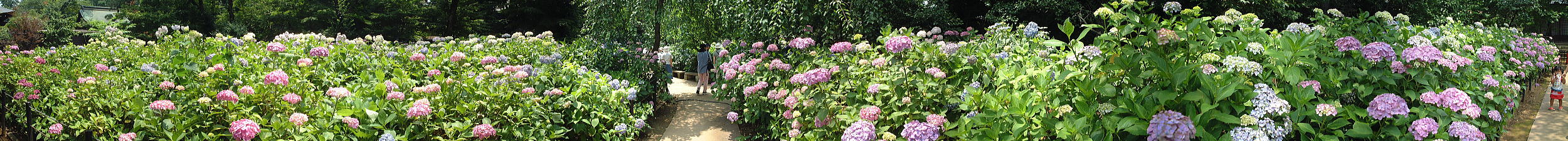 ↑境内には15種類、3万株のアジサイがあるそうです。 ↓花菖蒲も満開で、競演していました。
