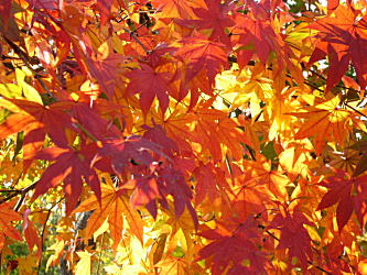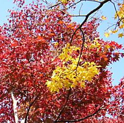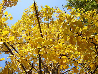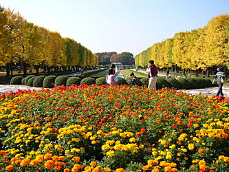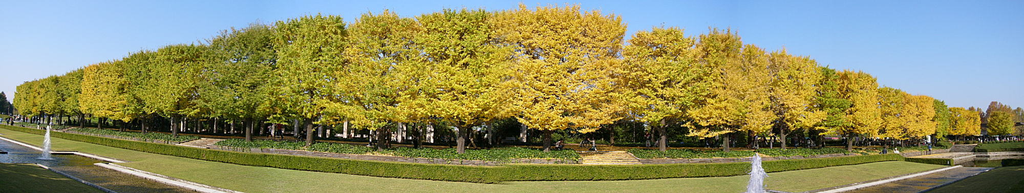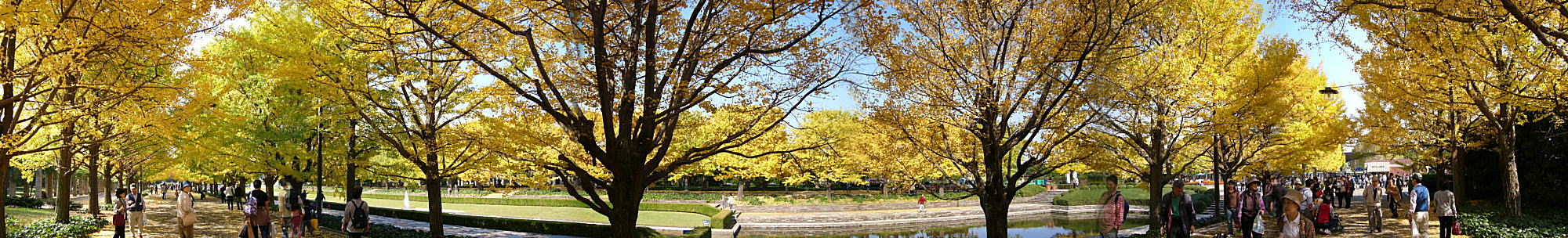 晴天の日曜日。昭和記念公園立川口の銀杏並木。 園内では紅葉も日本庭園など、ところどころに見られました。