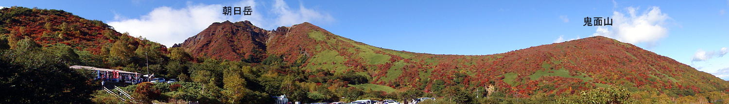 13:30 茶臼岳の東側、峰の茶屋駐車場から撮影。朝日岳、鬼面山は見ごろ。でもちょっとピークはすぎていたかも・・