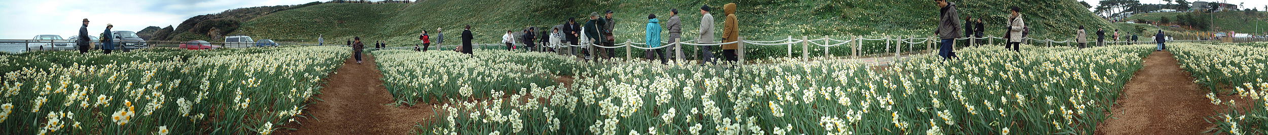 花壇の水仙はちょうど満開。斜面の野水仙はちょっとおわりかけ。芳香がムンムンしていました。
