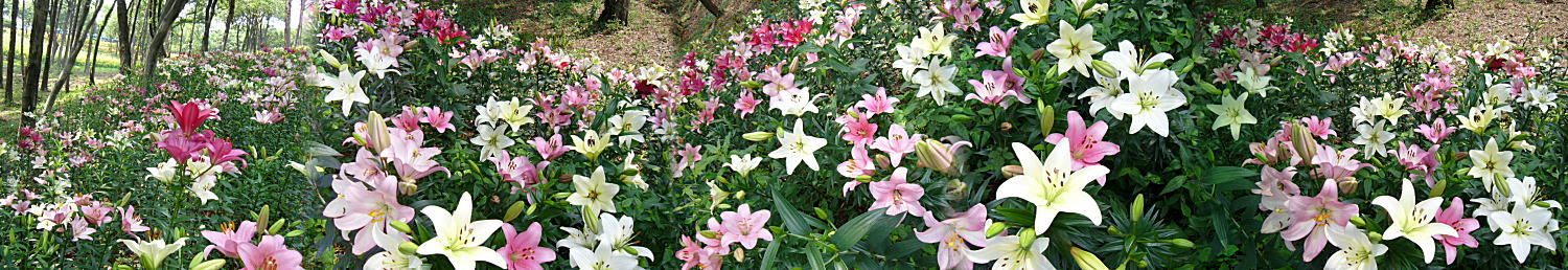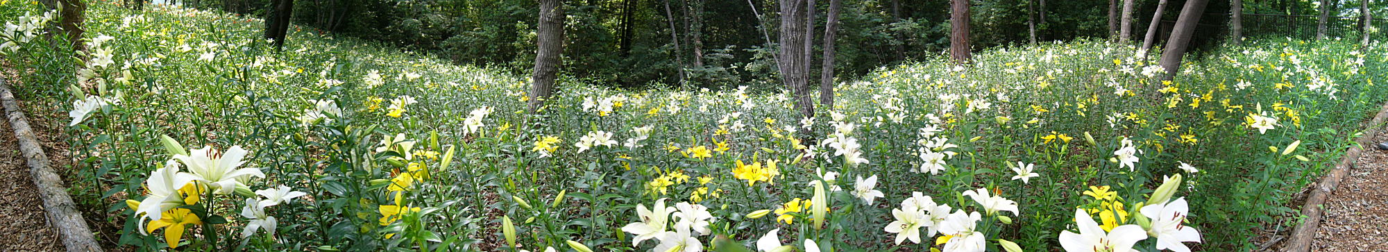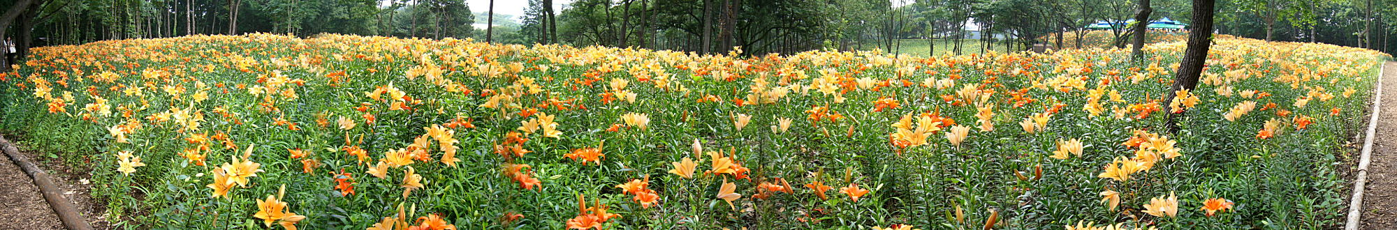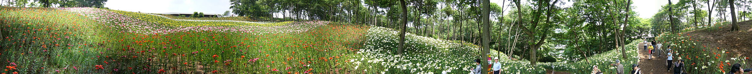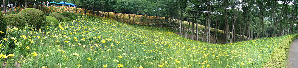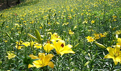 今年オープンしたばかり。広さ約3万uの花園に約40種・25万株のゆりの花が華やかに咲き競っていました。