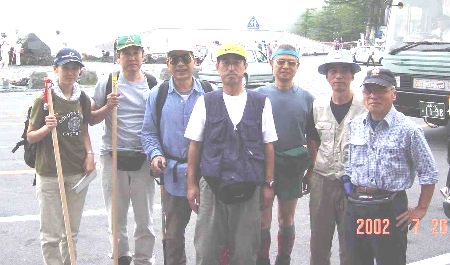 富士登山に意気軒昂のメンバー集合写真の左から、@佐藤亜希子さん(あの光上さんのお嬢さん