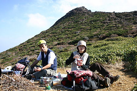 一休みして朝日岳登頂を目指す。