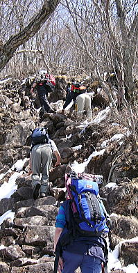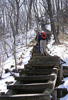 暫く登ると、木の階段が始まり、結構、急な階段で、これが何と氷室山