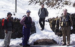 ここがヤセオネ峠で、泥濘で汚れた靴を雪で