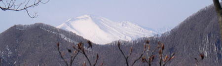 歯抜けのように鋭い山姿の妙義山、そして一際高く裾野まで真っ白な円錐型で、一瞬、