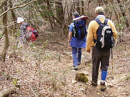路端に「ひとりしずか」や薄青色の「スミレ」
