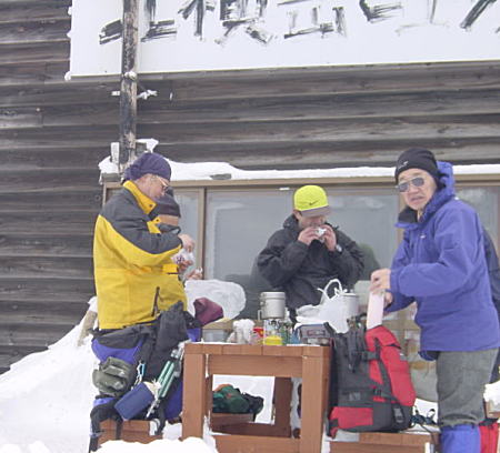 一息入れる。昼食時にはここが寒くてしょうがなかったのだが、山頂の寒さを経験した直後だけに、