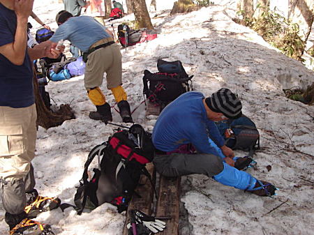 ここでアイゼンを装着。