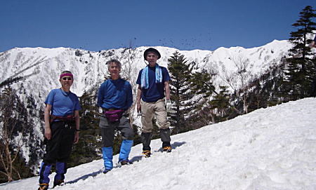 ましたが、残りの3名はこれ以上望めない程の好天に恵まれ、残雪の北アルプス、風化奇岩の燕岳に感動を
