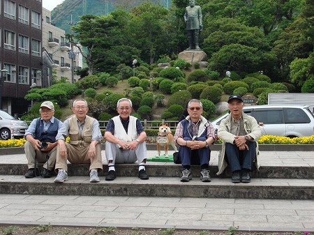 8:30に迎えの車が来て、鵜飼さん、吉松さんが前に、後ろに水島さん、竹内さん、熊本が乗る。