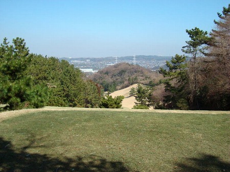 一方右側は開拓が進み、住宅団地が登山道の直ぐ 下まで進出してきており対象的である。 その左手前方に鎌倉カントリークラブのゴルフコースが 迫っている。 山頂が近づいたことを感じさせる。 右手山道を登ると天園茶屋、峠の茶屋が続き、その 正面に白亜のクラブハウスが見えてきて、その左サイド が芝生の広場となっておりここが天園である。 |