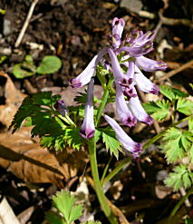 薄紫のムラサキケマン、黄色のミヤマキケマン、 の群生が続き、目を奪う。 |