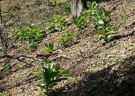 更にミヤマエンレイソウ、ハシリドコロ等、春の 高山植物が満載で飽きることがない。 |