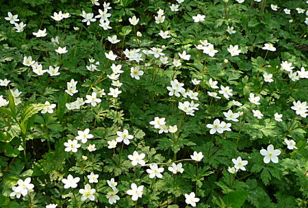 陽が上空から差込み、お花畑が一段と 鮮やかさを増し、ニリンソウも来た時よりも 太陽に向かってめいっぱい花を開いている。 |