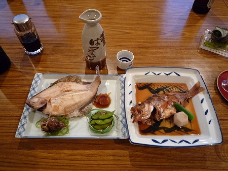 焼き物:ネサシガレイの素焼き バイ貝の旨煮、だだちゃ豆つき 煮付け:めばる(ヤナギノマイ) さといも、おくらつき 日本酒の初孫もとても口当たりがよかった。 なんとこれが飲み放題なのである。 |