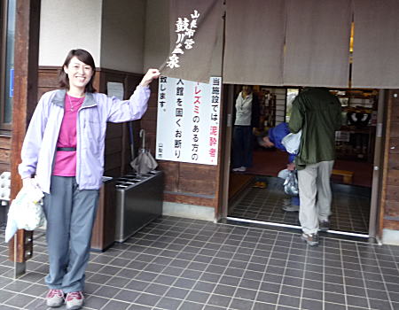 | 湯はツルツルでいかにも肌に良さそうである。地元の人はポリタンクを持ち込み露天風呂に流れ込む源泉から 満タンにして自宅に道帰る。30分ほどで男性人は上がり戻ると、碇谷さんは眠れはしなかったが、横になって いただけで元気が回復したと、入れ替わりに温泉に入りに行く。 レンタカーを運転し駅まで戻るため男性3人も、今回はアルコール抜きで牛乳にて乾杯する。 17:30に温泉を出る。既に外は真っ暗になっていた。 20分程で駅に戻り、レンタカーを返し、駅で電車を調べる、次の特急は19:11までない。普通で乗り継いで帰っても、 その特急で帰るのと時間は変わらない。特急で4人固まって指定を取り、約1時間強の待ち時間を、塩山駅前の 食堂で一杯やりながら時間潰しをすることにした。 |