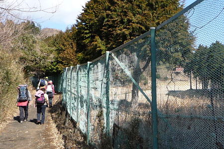 暫く急な舗装道路を登ると、途端に 汗が噴出した。 昨夜の天気予報では「最高気温が 9度くらいで、風が強く、体感温度は 3、4度程度」に騙され寒さ対策を 万全に厚着してきたが、今日は陽射し が強く、風がなく暖かい。 |