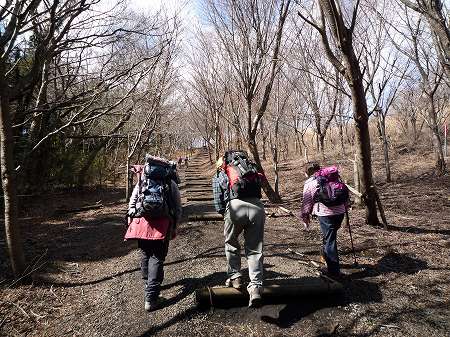 幕山公園から来るハイカー、 スニーカーやタウンシューズの 観光客までが登ってきており、 列を成している。 昼食が取れるスペースを探し ながら下る。 途中にある東屋も満杯で更に下り、 |