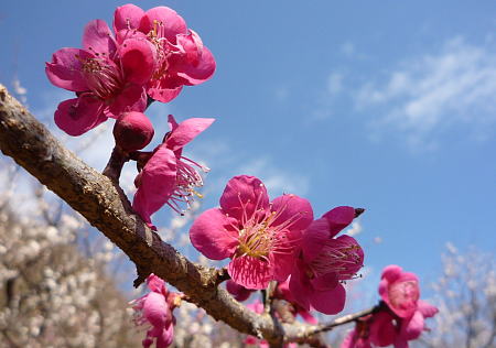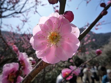 30分ほど昼食・休憩を取り、梅見鑑賞 となった。 梅林丘の上の方は7分咲き程度で、 白梅と |