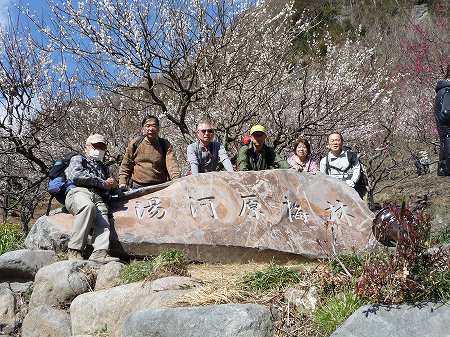 初梅見を楽しむ企画である。湯河原駅で8:55待ち合せに集合したのは、高橋ブラザースの雄さん、文さんと