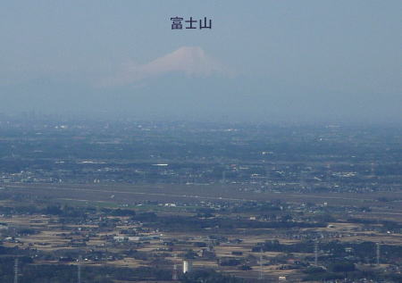 女体山山頂(877m)にやっと到着した (11:30)。 山頂に立つと、関東平野が一望でき、 都心まで何の障害物もなく真平なことが 良くわかる。 |