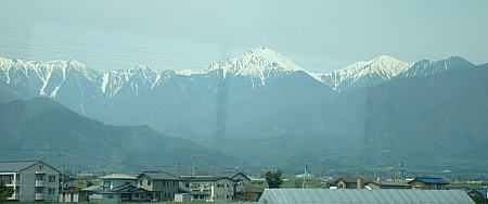 韮崎を過ぎると今度は右手の車窓からは 八ヶ岳が見え始める。 |