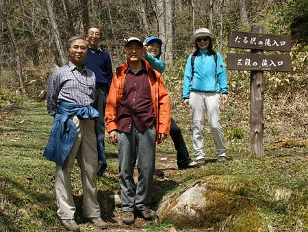 たる沢の滝、三段の滝の矢印に従って、 登山道に入る。陽射しが暑く直ぐに 汗が滲んできた。 |