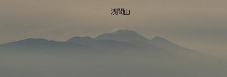 一方、東南の方向には一面の雲海が 垂れ込め、新潟方向の妙高、火打、 戸隠、菅平方向の根子岳、四阿山、 その右には浅間山が雲海の上に出ており、 微かに浅間山の噴煙も確認できる。 |