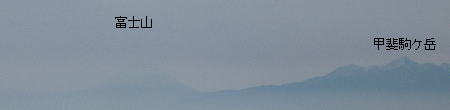 更に東側には秩父山塊から八ヶ岳が やはり雲海の上に頭を出している。 富士山は霞んではいるが何とか確認が 出来た。 |