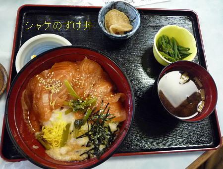 めずらしいシャケのずけ丼。 ボリュームたっぷり。 |