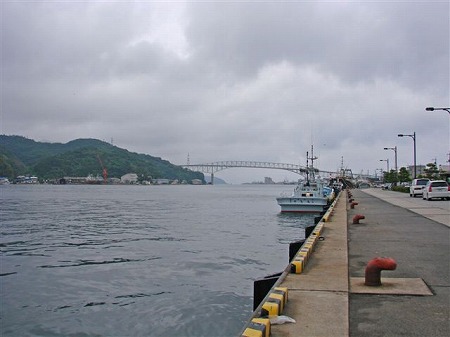 美保関へ渡る境水道大橋も遠くに望めた。 大型船が航行するので、橋桁はかなり高い。 |