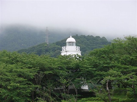 境水道大橋の下あたりに、桜の名所と なっている公園が広がる。 江戸時代末期に黒船の来襲に備えた お台場の跡だそうだ (国指定史跡 境台場跡)。 公園の一角には、「境港灯台」が立つ。 明治28年に開設された山陰最初の 灯台だ。 |