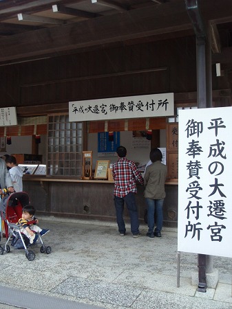 「平成の大遷宮」奉賛受付所には、善男善女の 姿も見られました。 |