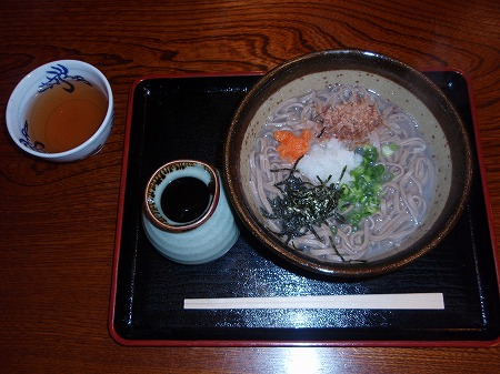 こちらは、釜揚げそば。 出雲地方特有の蕎麦だとか。 丼の中にゆでたての蕎麦と濃厚で風味 豊かな蕎麦湯が入り、好みに合わせて 直接だしをかける。 最後の一滴まで飲み干したくなる味・・・ とは、店の宣伝文句 |