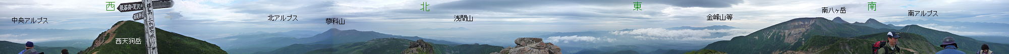 この夏の時期は遠望が利かないのだが、今日のこの360度の展望が見られ一同感激しながら山頂からの景観を堪能した。