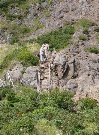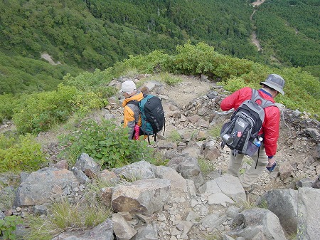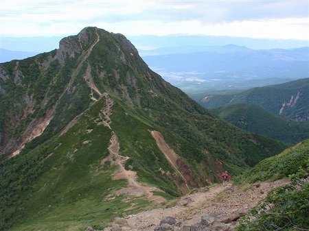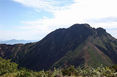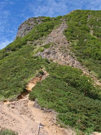 鞍部でしばし息を整えて、早速中岳越えに取り掛かる。 |