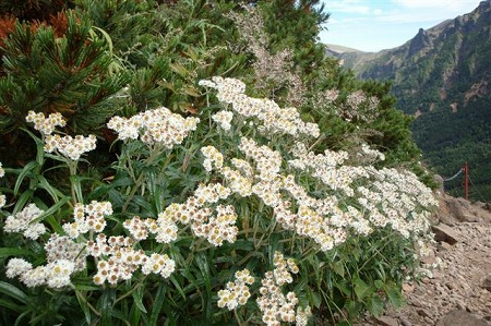 登山道に咲く可憐な花、ヤマハハコ。 |