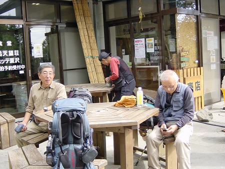八ヶ岳山荘で、バスが来るまで40分ほど休憩。 整理運動をしたり、アイスクリームを食ったり。 |