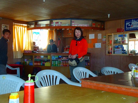早めの昼食を摂ってエヴェレストB.Cへ行くつもりで、ロッヂに入ると、某洋酒メーカーOBの沢岡さんがいる。彼は奥さんと友人の3人で、我々より1日早い日程で歩いている。 初めはタンボチェでお会いした。 |