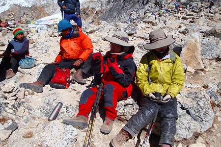 「カラ・パタールを往復して戻ってきたところだ」という。 奥さんは、具合がよくないのでロッヂで寝ているとのこと。 昨夜かららしい。 これを聞いてビソさん「すぐに下に降ろさないと危険だ!」 |