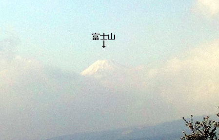 この頃には上空には青空が広がり、十国峠近く に来た時に、雲の上から富士山が頭を出した。 タクシーの運ちゃんが一時停止してくれて、カメラ におさめる。 なんとか、年内最後の富士山を拝むことが出来た。 (このあとはすぐにまた雲に隠され、見えなくなって しまった。ほんの一瞬であった。) |