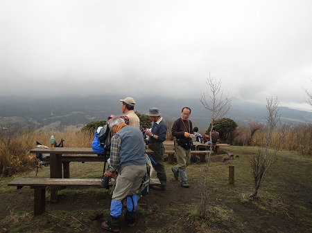 タクシーで十里木駐車場へ。 ぬかるんでいるだろうと皆さんスパッツを 装着。 みぞれが降ってくる。 晴れてくるんじゃなかったのか。 |