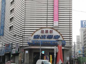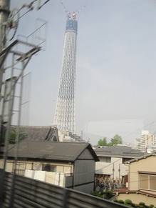 浅草駅の次の駅「業平橋」はスカイツリーが 建つ場所で、真下を東武電車が走る。 |