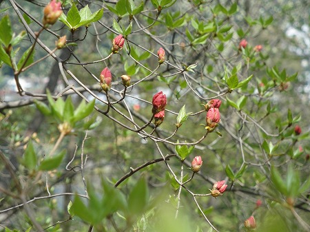 登り口付近はヤマツツジが群生しているが、 まだ蕾の状態であった。 |