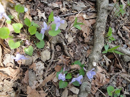 足元にはスミレの花が咲き、踏み潰さない ように歩く。 |